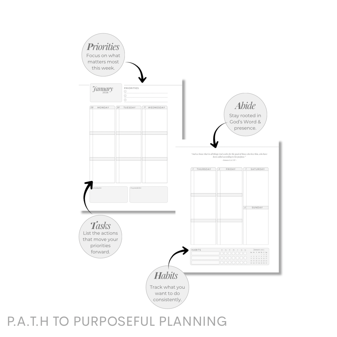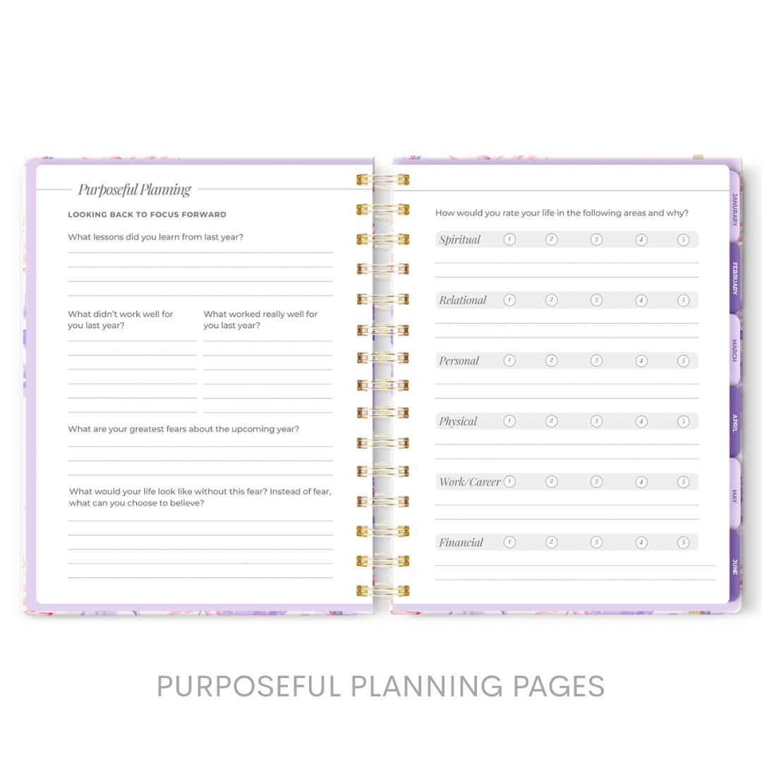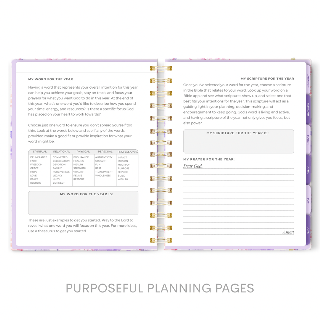 - Planning pages to help you seek God as you set your intentions and goals for the year.