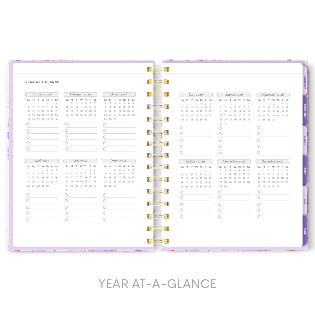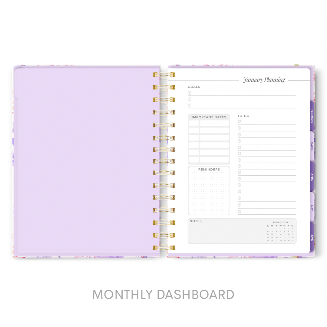 - Monthly reflection pages help you review your plans each month to reset and prepare for what's next.